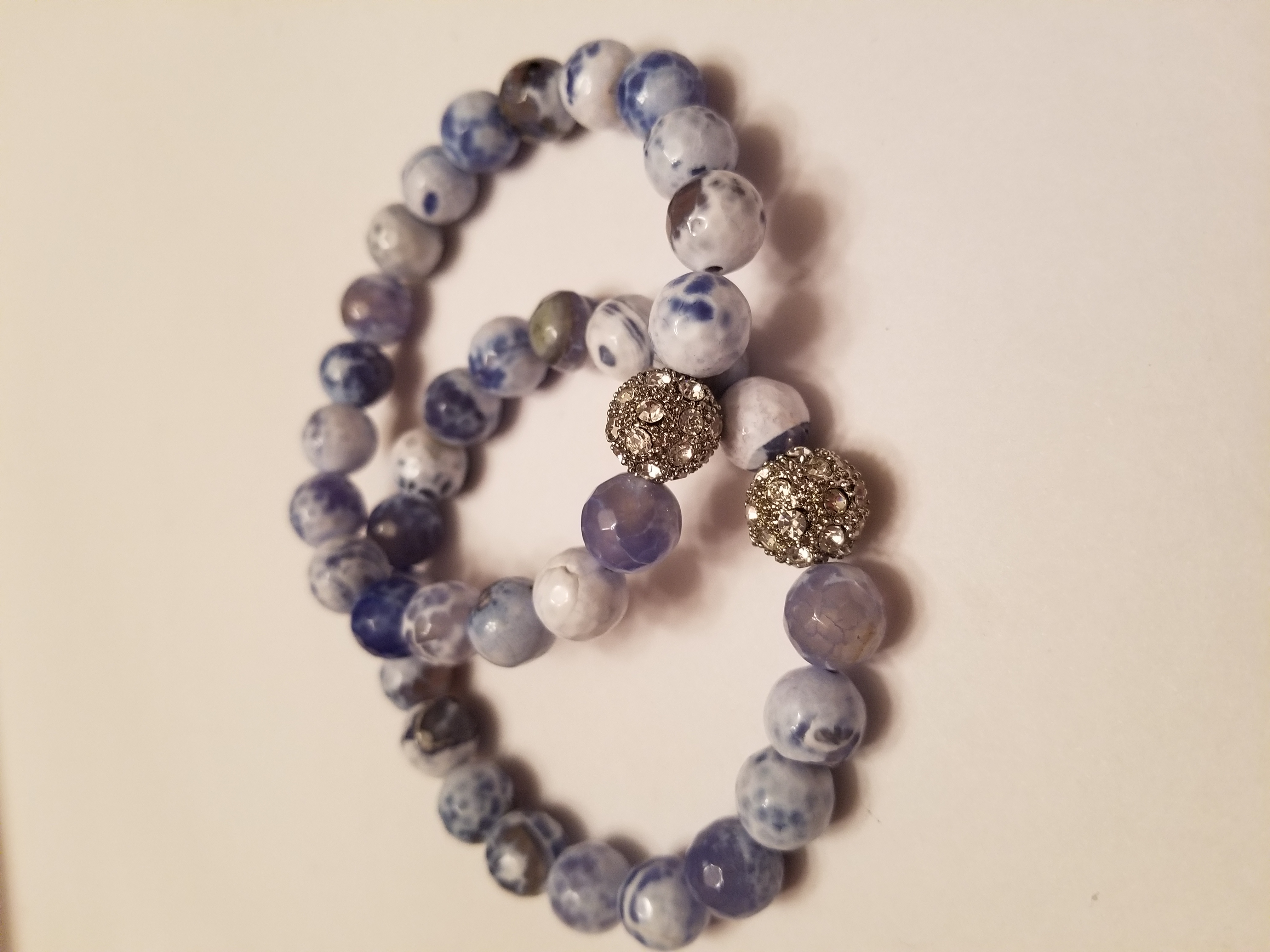 Comfortable, natural, blue fire agate bracelets that manifest with natural variations of beautiful blues and whites in every bead. This set can be worn every day just like your favorite pair of denim jeans.